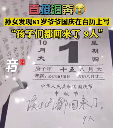 10月1日,老人的孙女回到家,翻开老人这一页日历,直接泪奔。