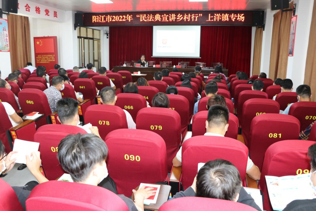 日前,阳江市2022年“民法典宣讲乡村行”活动走进上洋镇,通过宣讲的方式开展《民法典》宣传。