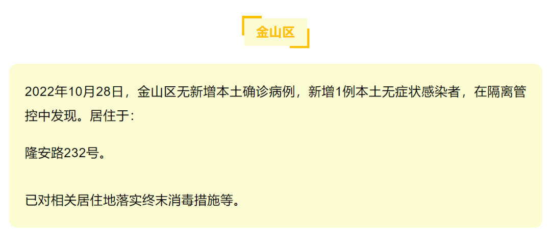 2022年10月28日0—24时,新增本土新冠肺炎确诊病例1例。