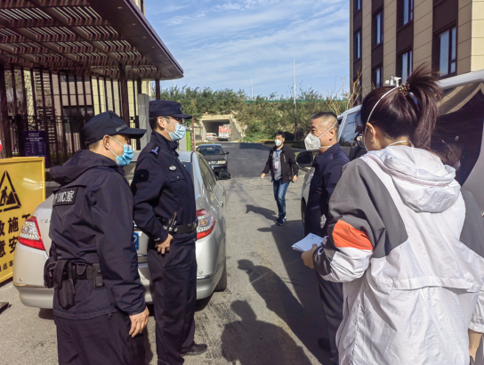 10月29日上午8时,环翠公安分局法制大队大队长吕伟在环翠区某小区卡点值守,看到来到卡口附近的居民他便会解释道:“请大家落实好防疫措施,非必要不外出,网购物品做好消杀……”