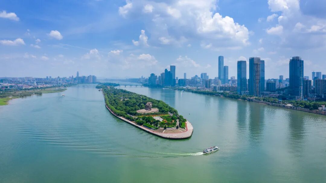 7月22日,俯瞰长沙湘江两岸,百里湘江风光带绿意融融,一幅生态都市画卷在眼前徐徐展开。湖南日报全媒体记者 辜鹏博 摄