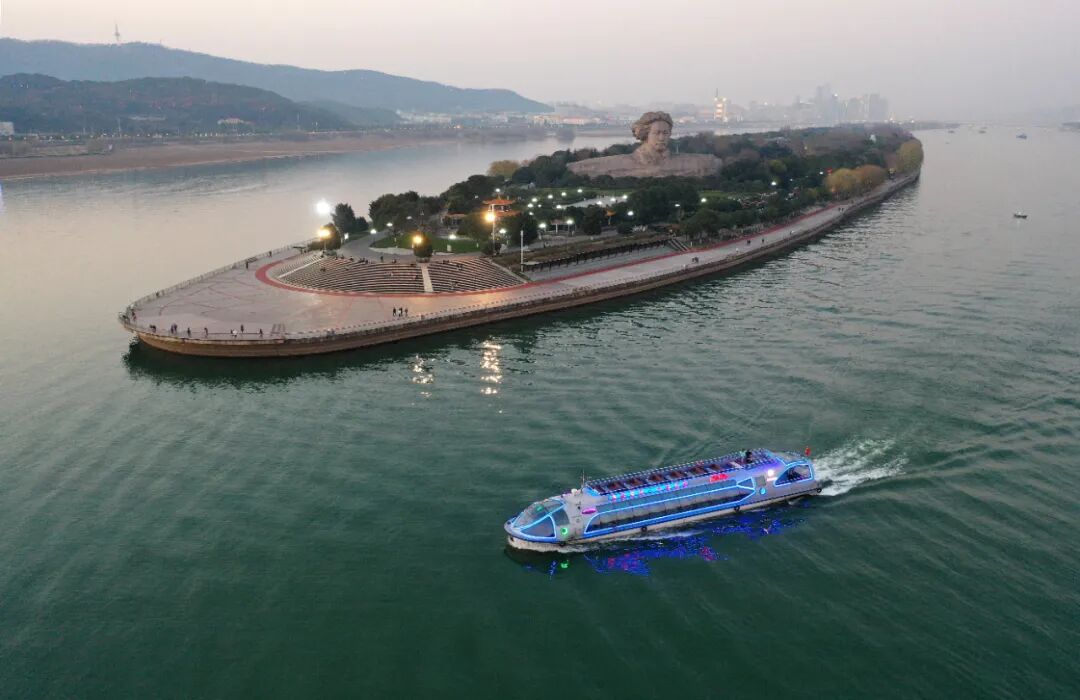 与此同时,湖南首艘电动游览船明年将全新亮相湘江,这艘新能源船载客量将达到300人。
