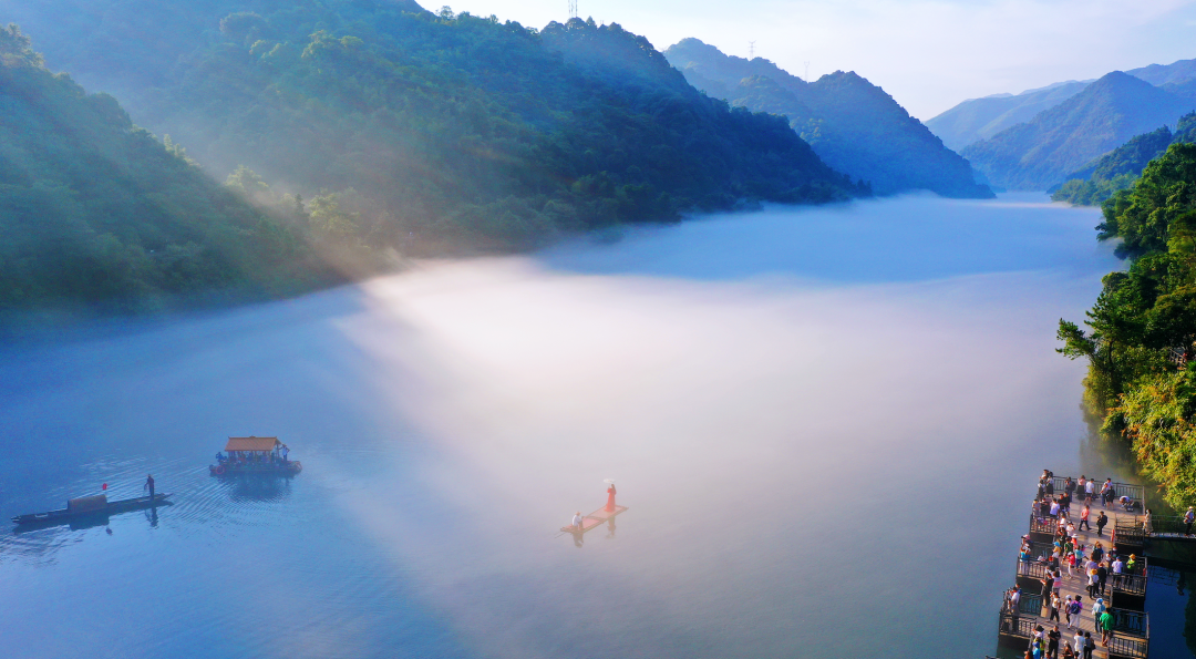 8月17日清晨,资兴市东江湖景区“雾漫小东江”美景。湖南日报全媒体记者 徐行 摄