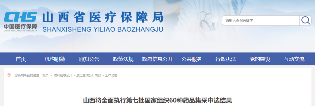 日前,山西省医疗保障局印发《关于全面落实第七批国家组织药品集中采购中选结果的通知》,全省所有公立医疗机构将于11月20日起全面执行第七批国家组织药品集中带量采购中选结果。