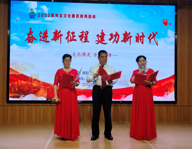 10月26日,“奋进新征程 建功新时代”2022年保定市竞秀区文化惠民系列活动在竞秀区文化馆举办,来自竞秀区的文艺爱好者们共聚一堂,通过精彩的朗诵节目,歌颂党的光辉历程,抒发对祖国的热爱。