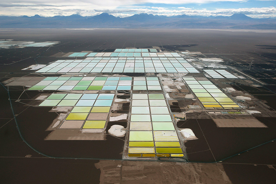 在智利的阿塔卡马沙漠,锂矿开采业使用巨大的蒸发池来浓缩和提取锂。这种做法不仅会对环境造成较大的干扰,还导致了人们对水资源枯竭和污染的担忧。(图源:REUTERS / ALAMY STOCK PHOTO)