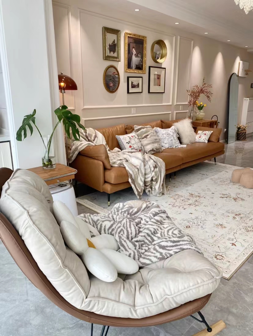 客厅换了很多装饰品,沙发的盖毯带有虎纹元素,材质也很柔软,晚上窝在沙发看“本座”太舒服不过了。