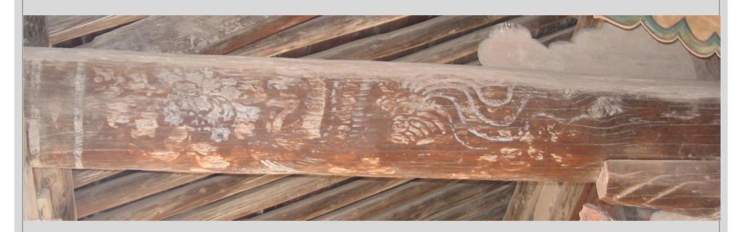 王仲杰:庙门的大梁上画的这种凤,边上有这个彩画,专业管它叫箍头,还有连珠。让我初步的分析,它大约是清代遗物,跟元代没什么关系,就彩画来讲,它是清代的彩画。