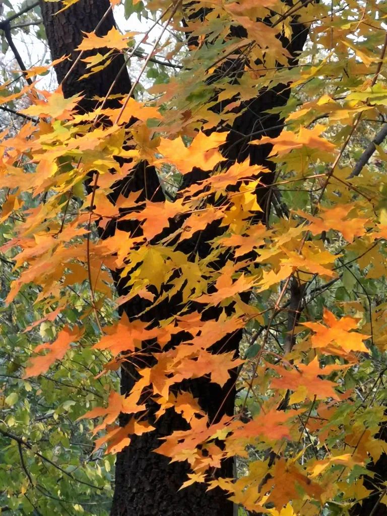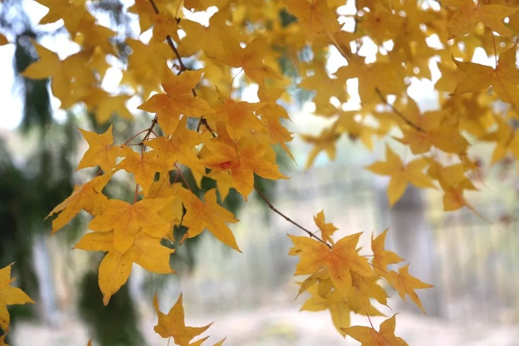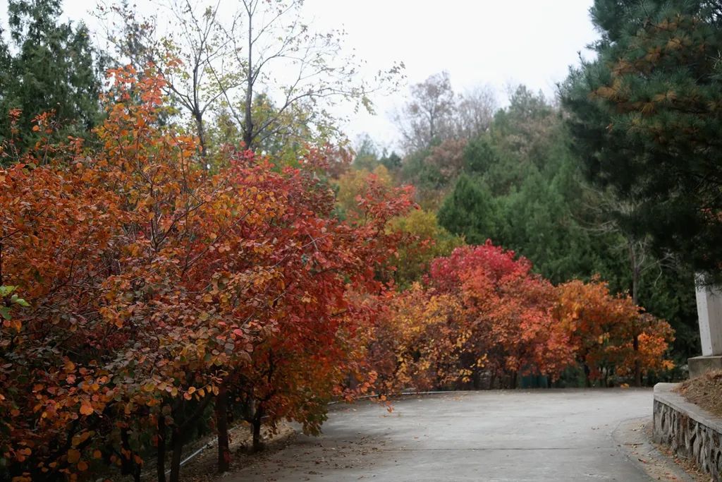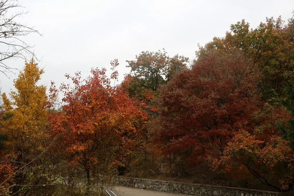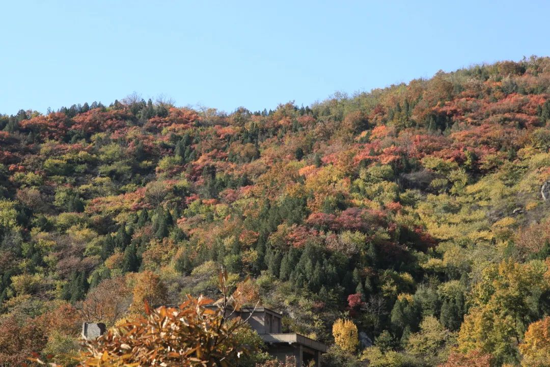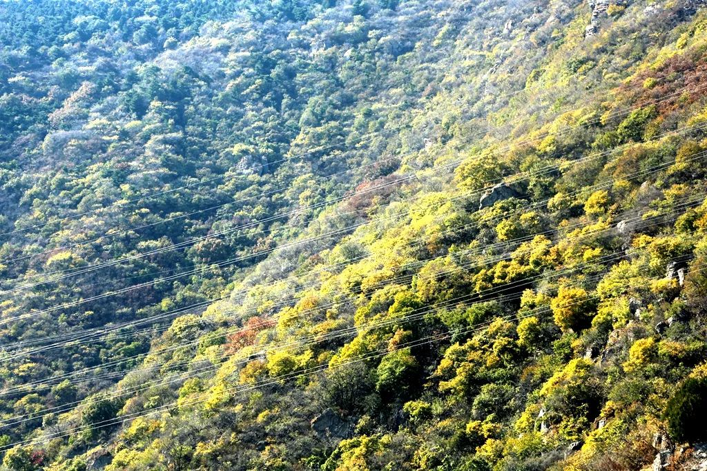 山体上的槲栎、小叶白蜡、栾树、鸡爪槭