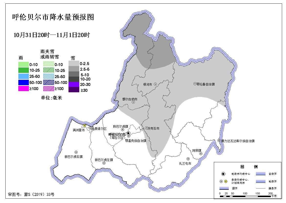 今天夜间到明天白天:雨雪大风天气覆盖全市。其中陈旗东部、额尔古纳市大部、根河市、牙克石市北部、鄂伦春旗西部部分地区有大雪,牧区大部、林区的额尔古纳市西南部、牙克石市中部、鄂伦春旗西部、北部有中雪,其余地区以小雪或小雨为主。此次降水过程主要集中在今天夜间,岭西大部地区降水相态以雪为主,岭东地区会有雨雪相态的变化。牧区东部伴有5-6级的西北风,牧区西部西北风6-7级。风雪天气下,能见度较差,出行注意安全。