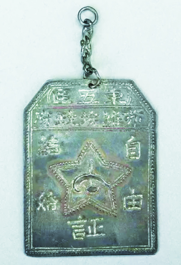 1932年东五区苏维埃政府颁发的自由结婚证章