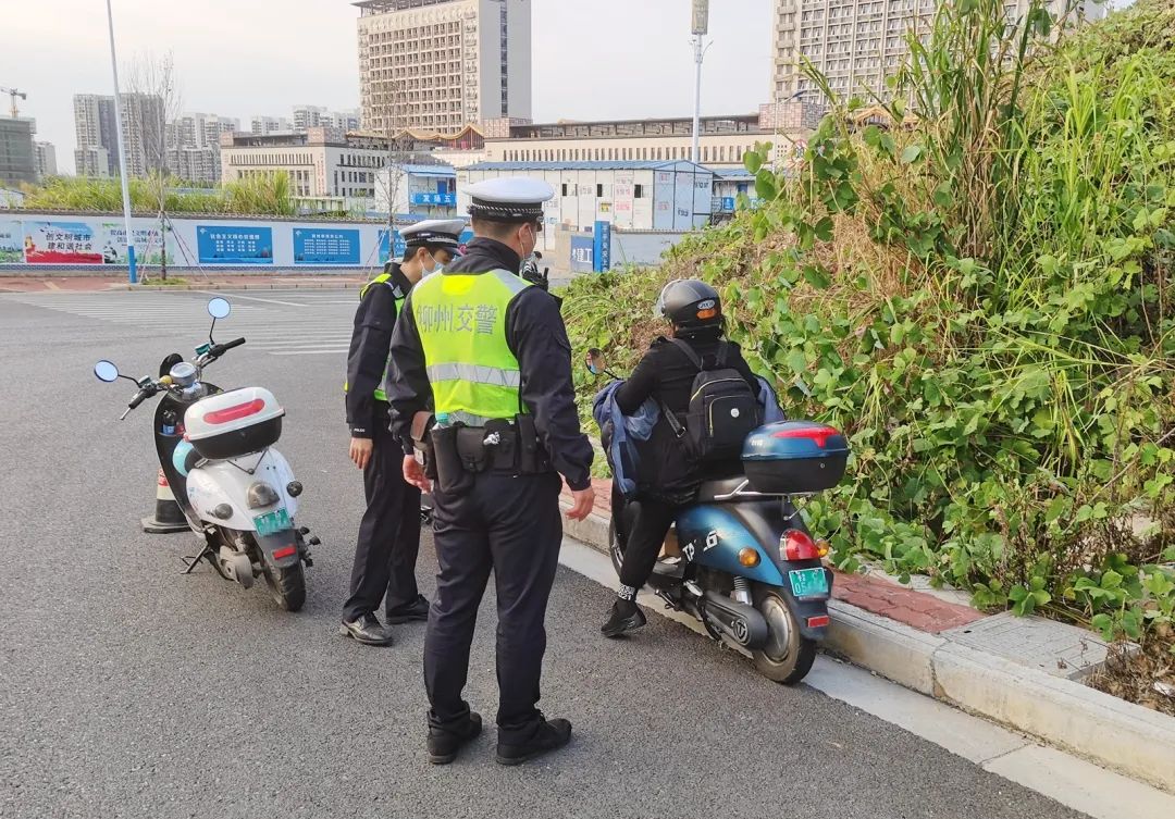 柳州交警加强对电动自行车路检路查,严查电动自行车无牌、假牌、套牌等违法行为,认真核查车辆信息,发现“两电”违法犯罪线索的,及时移交相关部门做进一步处理。