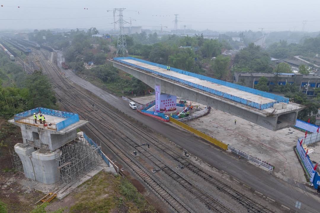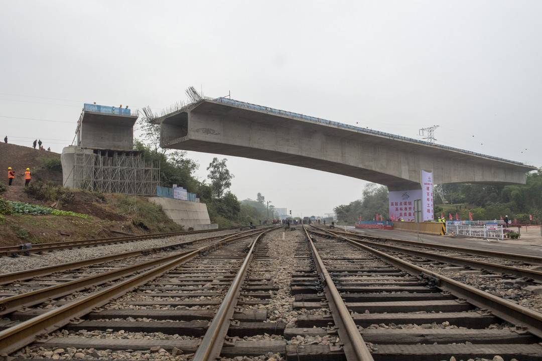 记者从京昆高速铁路西昆有限公司获悉,10月30日上午9时38分,位于四川泸州的重庆至昆明高速铁路(以下简称:渝昆高铁)寒坡岭特大桥建设现场,经过近2小时转体施工,成功跨越既有隆黄铁路,标志着渝昆高铁全线首座转体连续桥成功转体。