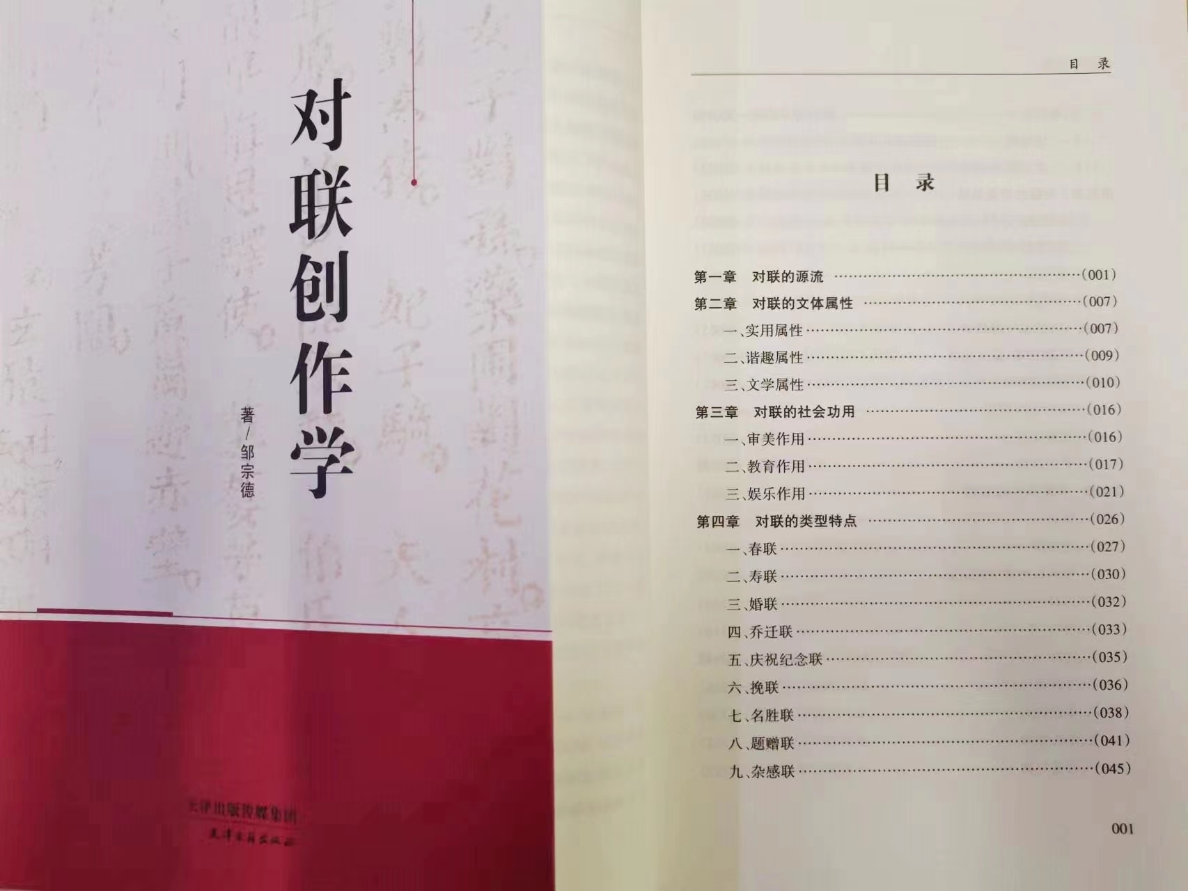 这次邹宗德参评的专著是《对联创作学》,获奖的理由是:《对联创作学》第一次将对联理论研究从语言学角度上升到文学角度,第一次提出“粘对”理论,第一次总结出“对格六十一种”。此专著于今年6月一出版发行即引起社会广泛关注。9月9日《湖南日报》予以推介,9月30日《中国楹联报》也发表了评论文章。
