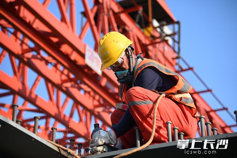 记者30日在施工现场看到,潇湘大道东侧桥墩和盖梁已施工完毕,10台千斤顶同步发力,将巨型钢槽梁缓缓升高,然后在液压自动控制系统的推动下慢慢向前移动。“现在正在施工的是西涉水引桥桥梁,桥跨布置均为5×63米,单幅桥面全宽19.24米,采用步履式顶推法施工,最远顶推距离315米。”江群龙介绍,单幅桥采用多片梁结构,每跨含9个节段,通过分节段钢槽梁集中加工制造、运输、吊装、拼装,采用步履式多点连续顶推,有效解决了吊装结构受力复杂、作业面狭窄等难题。