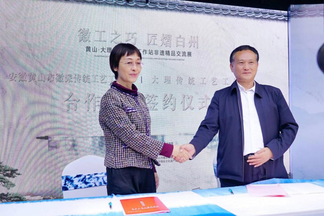 活动中,黄山市文化和旅游局、大理自治州文化和旅游局就非遗传统工艺工作站签署了合作协议,进一步构建两地非遗交流互鉴桥梁,增进两地民相亲、心相通。