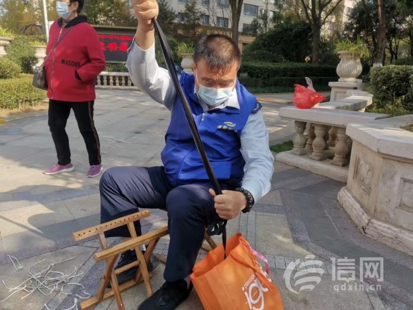 正在埋头穿马扎的是来自青岛城运控股公交集团李沧巴士第四分公司爱心志愿者团队志愿者张宝强,旁边的一位居民还和他畅聊穿马扎方法,一个马扎穿好不仅耗费时间,还是个力气活,可只见他精力集中,一针一针穿了多个来回,一个崭新的马扎逐渐成型。