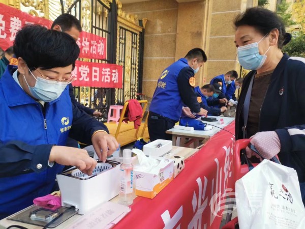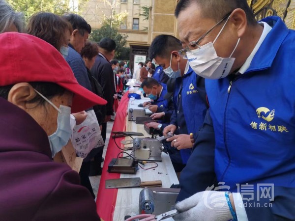 在活动现场,志愿者们身着蓝色背心,迅速将各个便民服务项目铺展开来,理发、磨刀、维修小家电、清洗眼镜、穿马扎、视力筛查等多类目服务呈现在居民眼前,令人应接不暇。