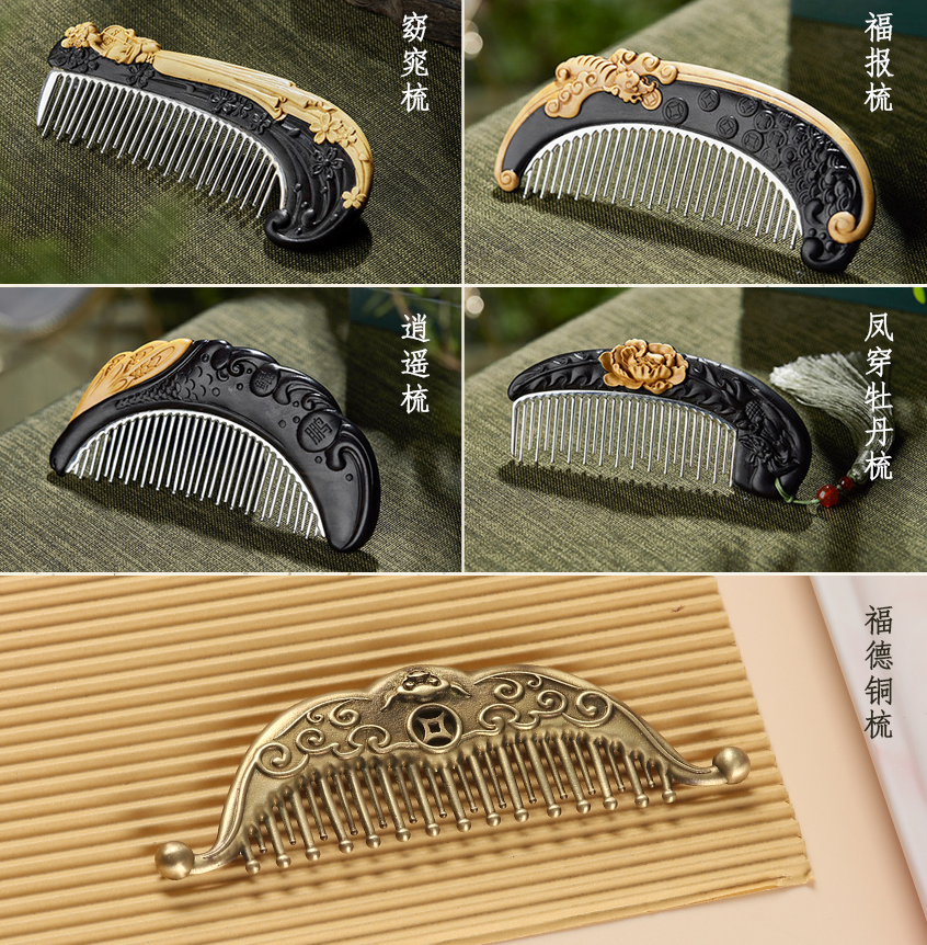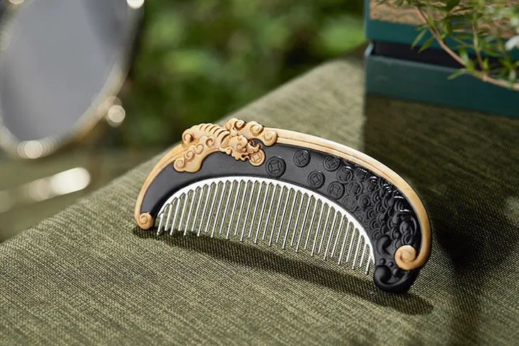 梳子精选黄铜材质,传承国家非遗技艺,经历数十道工艺,复古雅致,从头梳出好福气。