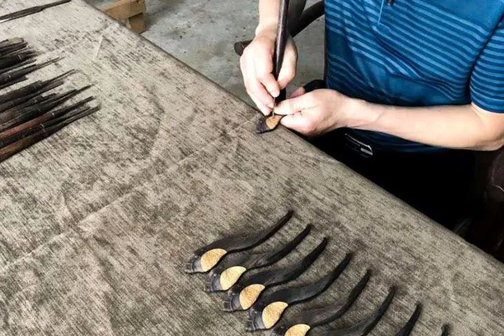梳柄的造型有牡丹花、仕女图、鲲鹏......传统美学都被他们巧妙地融入在一把小小的梳子里,就像工笔画一样精致。只有这样经过双手温度做成的作品,才有不衰的美和生命力。
