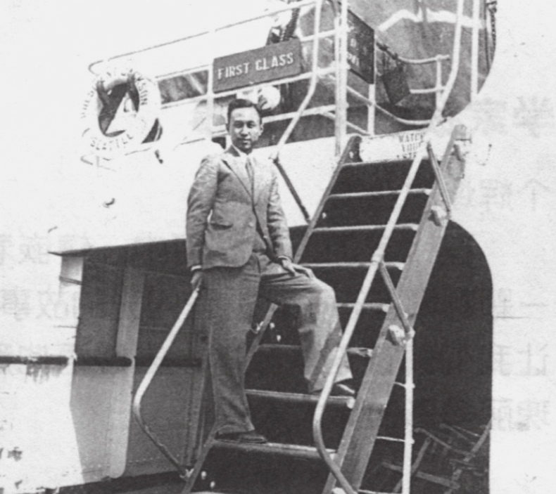 1955年钱学森一家启程回国时,在邮轮甲板上合影