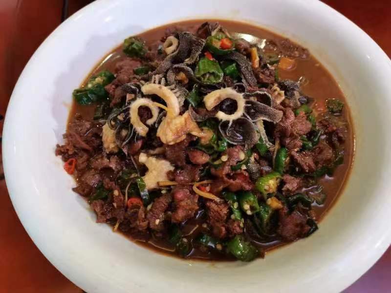 “嘉禾是享誉三湘的美食之都,子姜血鸭、血灌肠、红烧狗肉等7道菜曾被央视国际频道《走遍中国》栏目重点推介。”嘉禾县农业农村局乡村产业发展股负责人李云峰向记者介绍,嘉禾饮食文化独具特色,有亮嘢豆腐、三味辣椒、嘉津山茶油、禾仓香大米、倒缸白酒、富硒脐橙等农特产品,且近三年,农产品监测合格率均为100%。嘉禾县湘菜主要原料都是本地特有品种,其中豆腐、剁辣椒均通过了绿色食品认证。嘉禾名菜“嘉禾神仙狗肉”“凌云豆腐”“炸皮肉”“嘉禾血肠”“烧鸡公”“酒糟河鱼”等多次获得省级餐饮比赛金奖、银奖,并受到消费者一致好评。