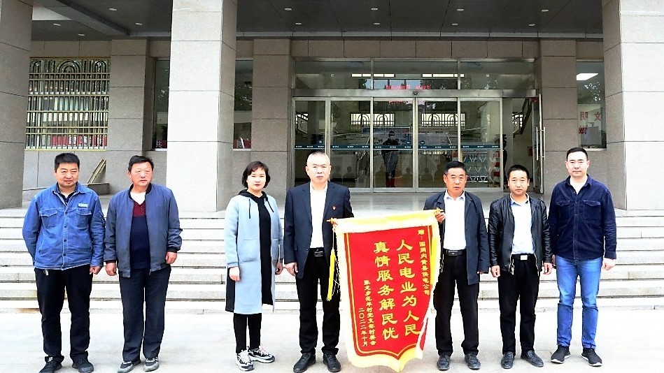 当日上午,县龙庆街道范羊村支书赵国军携该村两委成员来到县供电公司,将写有“真情服务解民忧、人民电业为人民”的锦旗送到了公司领导何敬甫手中,对公司主动尽职尽责、为民排忧的优质服务表示真诚的感谢。
