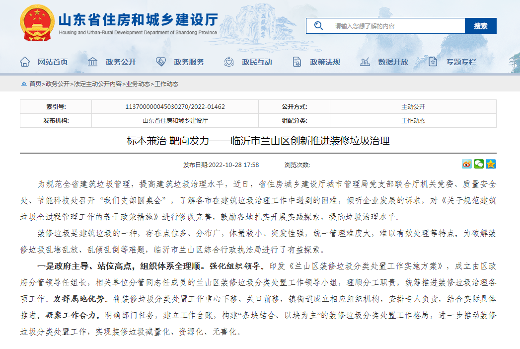 标本兼治 靶向发力——临沂市兰山区创新推进装修垃圾治理
