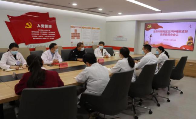 十八里店派出所民警、北京市朝阳区三环肿瘤医院党支部副书记陈林依托班子会,深入传达市、区两级公安机关和卫健部门关于医院安全工作的指示要求和工作部署,就贯彻落实措施进行认真研究。支部书记与院警副书记组织党支部班子成员逐人发言、提出建议,明确任务分工和具体安排。
