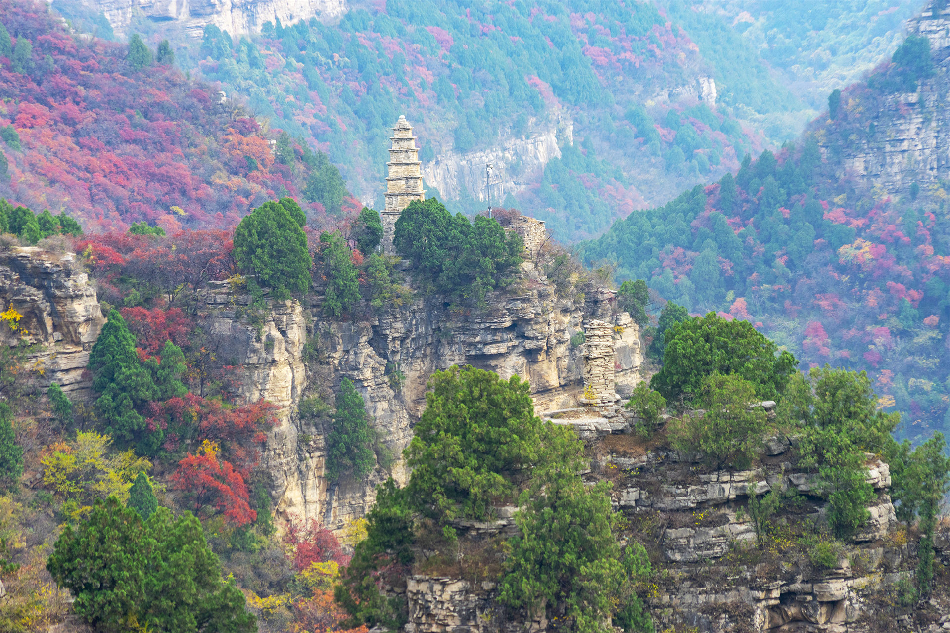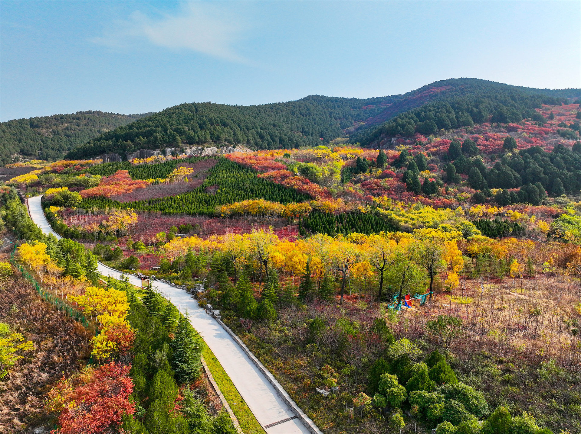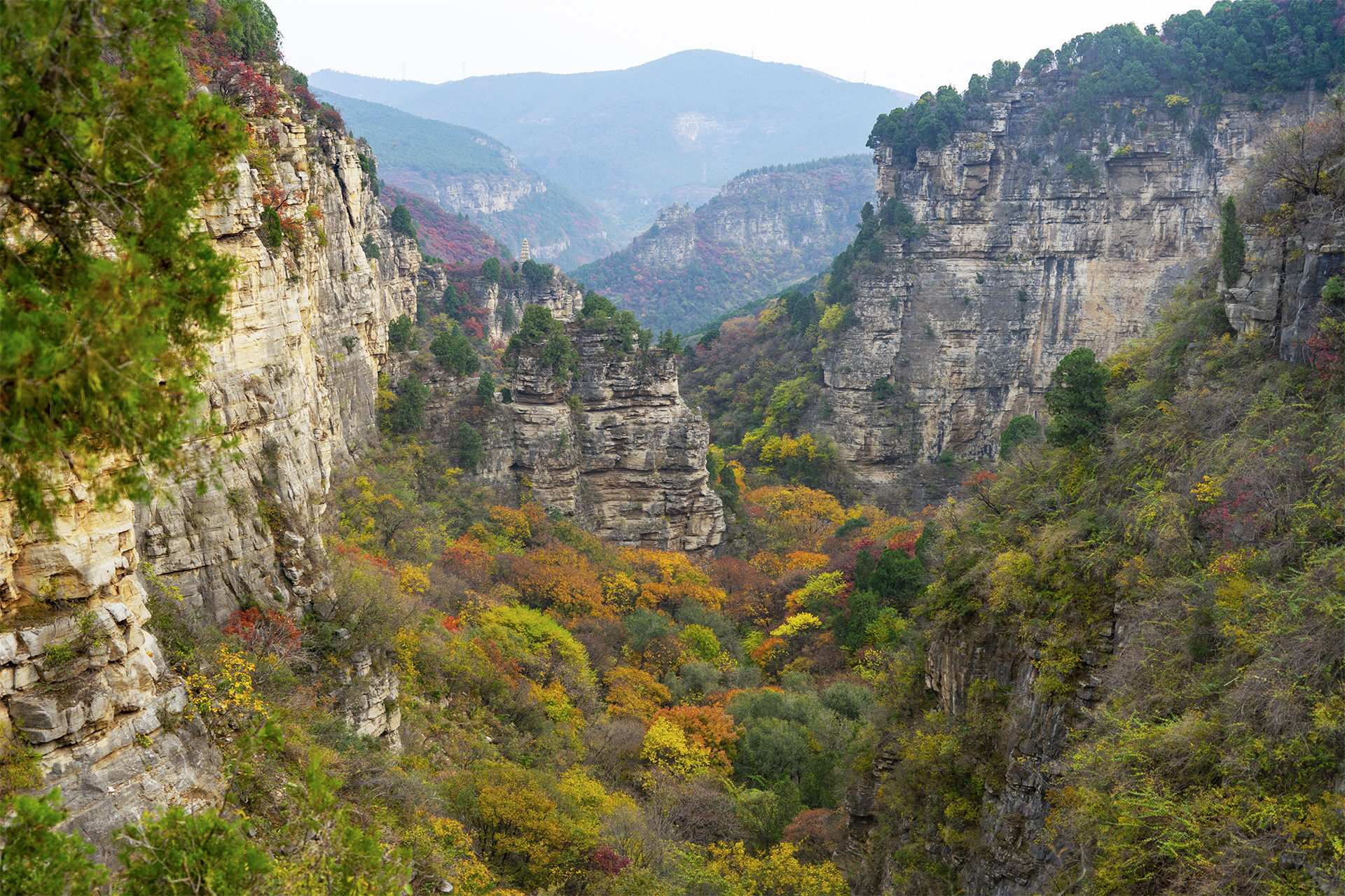 深秋的济南五彩斑斓 看满山苍翠、层林尽染的济南龙洞
