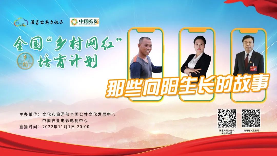 为展现乡村人物故事、推介乡村新风貌、展示乡村振兴成果,由文化和旅游部全国公共文化发展中心和中国农业电影电视中心联合主办的大型乡村网红访谈节目——“乡村网红”培育计划之《乡约》向上的力量专辑(第三十二期)将上线国家公共文化云平台。本节目已入选国家广电总局2022年重点节目展播。