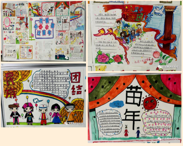除此之外,学生们还绘制手抄报、画画,用多种形式庆祝苗年,提升了学生的参与感。