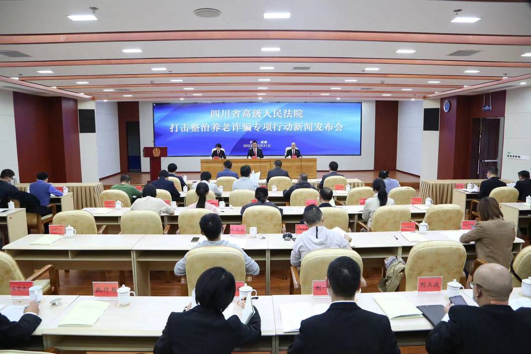 四川高院党组副书记、常务副院长秦海在会上通报,自专项行动开展以来,全省法院一审受理养老诈骗案件97件378人,总涉案金额87.592亿元,生效判处24名被告人五年以上有期徒刑,最高判处有期徒刑十五年,并处罚金、没收财产等财产刑2017.4万元。集中宣判一批”社会影响大、关注度高的案件,一批欺诈老年人的犯罪分子被依法严惩,对违法犯罪分子形成强大震慑。