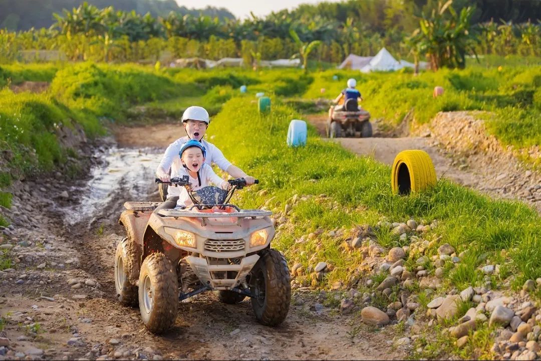 九洲花漾湾户外营地沙滩越野区占地面积15亩,全程专业赛道3700米,骑上越野摩托,探索速度与激情。