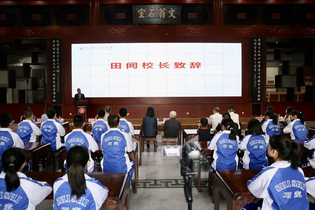 他还提到,石室中学新时期的育人目标是“培养有家国情怀和世界格局的未来领军人才。王火先生作品中蕴含的浓烈的爱国主义情感与石室理念不谋而合。……我想,从王火先生的作品中,从我们校友的故事中,大家都能体会到那深入肉体和灵魂的崇高的民族气节。王火先生曾说,最遗憾的,是一些年轻人没读过《战争和人》。但万事万物,化为文字,恒久生辉,余音袅袅。我相信,通过此次活动,我们石室学子将有幸拜读经典,也定能从此书中得到不凡的收获与启示。”