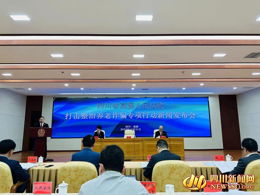 四川新闻网-首屏新闻成都10月31日讯(记者 何佳欣 摄影报道)10月31日,四川省高级人民法院打击整治养老诈骗专项行动新闻发布会在蓉举行。据了解,全国打击整治养老诈骗专项行动开展以来,四川法院认真贯彻落实党中央、最高法院和省委政法委的各项决策部署,专项行动取得阶段性战果成效。
