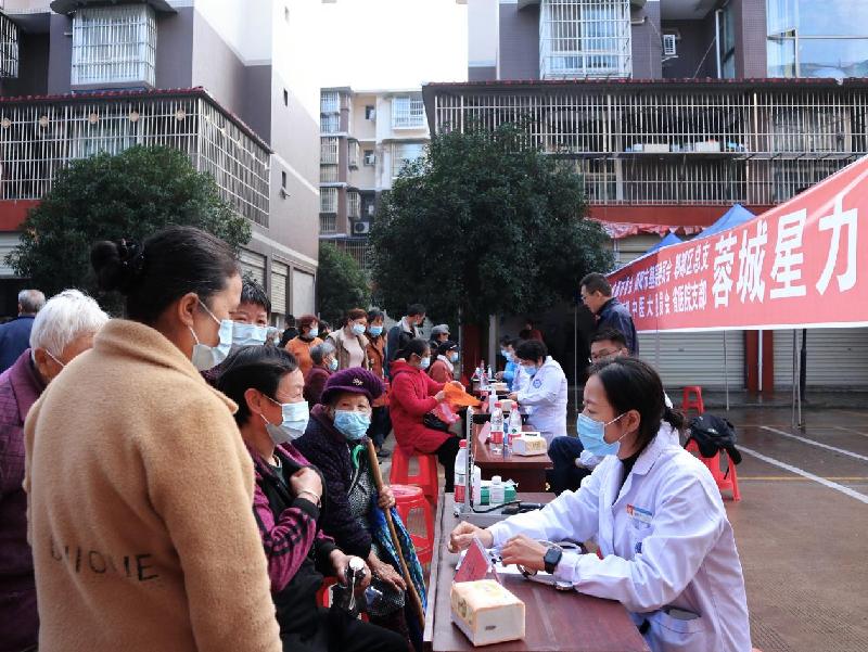 10月30日,民盟简阳市基层委员会邀请13位医卫专业盟员在江源镇江源社区开展“蓉城星力”义诊活动。民盟成都市委会专职副主委兼秘书长何立新、民盟郫都区总支副主委付贤怡,简阳市政协副主席、民盟简阳市基层委员会主委曾继元,简阳市委统战部常务副部长曾涛,江源镇党委委员、人大主席吴双等参加活动。