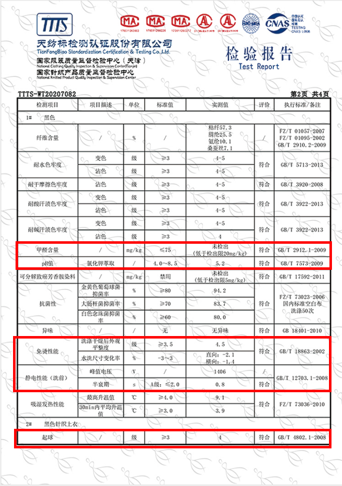 并且在抗起球、抗静电、色牢度、甲醛含量……等方面都通过国家针织产品质量监督检测机构检测达标,并且还出具了相关检验报告。
