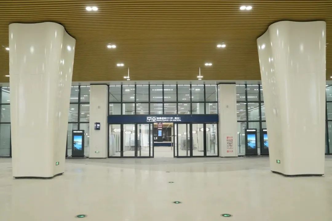 车站设地上两层、地下一层,站房建筑采用混凝土框架结构加钢网架结构形式,利用钢网架的优势最大限度增加结构跨度,让整个站房空间显得大气、舒适。