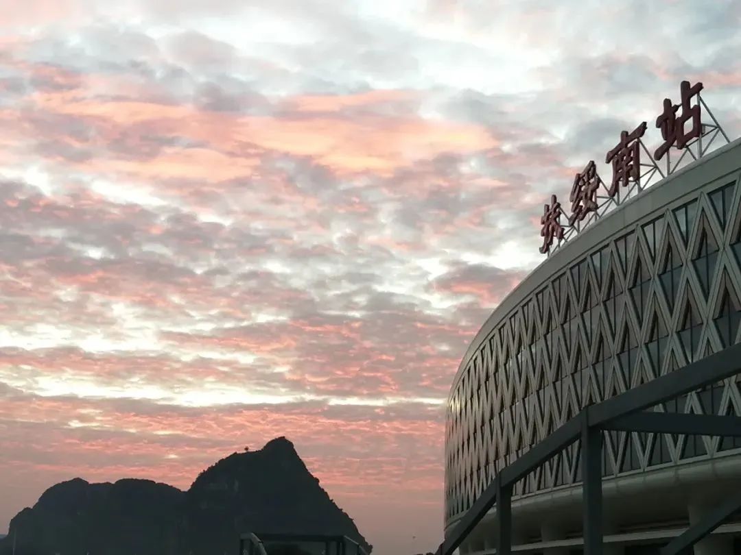 扶绥南站站房外观以“扶绥龙”脊背的椭圆形状为造型,米白色为主调。
