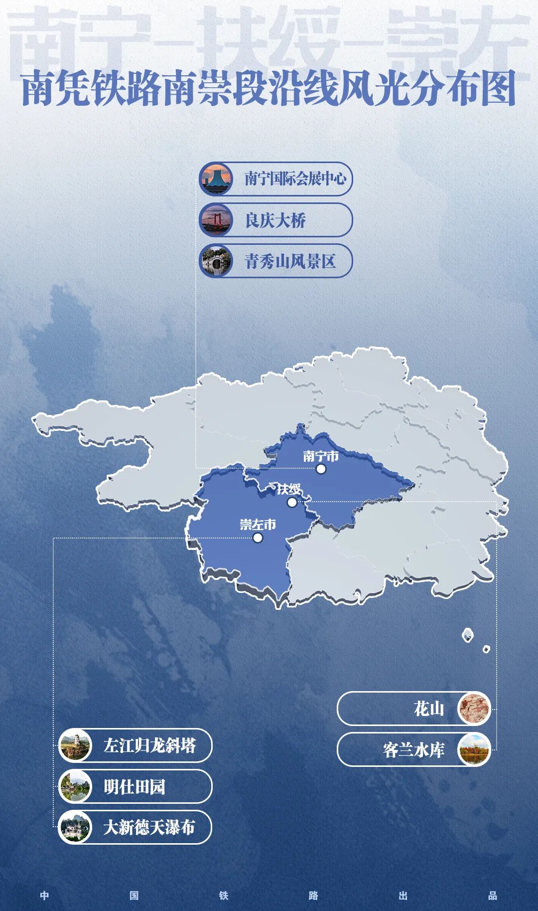 南凭铁路南崇段沿途设南宁、吴圩机场、扶绥南、渠旧南(预留)、崇左南5个车站,其中吴圩机场、扶绥南、崇左南为新建车站。