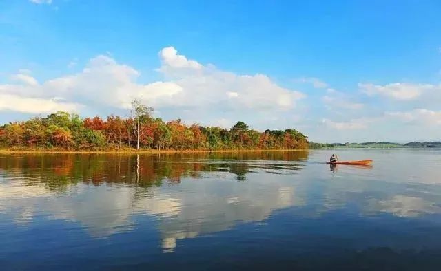 客兰水库,湖面广阔,风景秀丽。坐落在湖中的枫叶岛更是风景旖旎,岛上自然生长许多枫树,时至深秋,放眼望去,黄红相间、层林尽染、美不胜收。