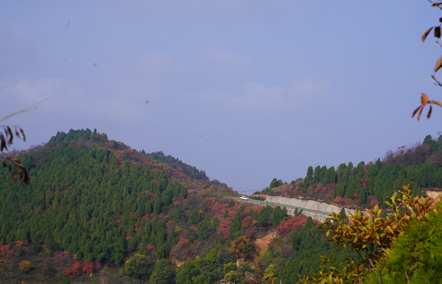 深秋的骊山,层林尽染、五彩斑斓。在骊山深处的房岩村“夕下骊山”店外,前来游玩的游客一边欣赏秋日美景,一边悠闲地品尝咖啡。