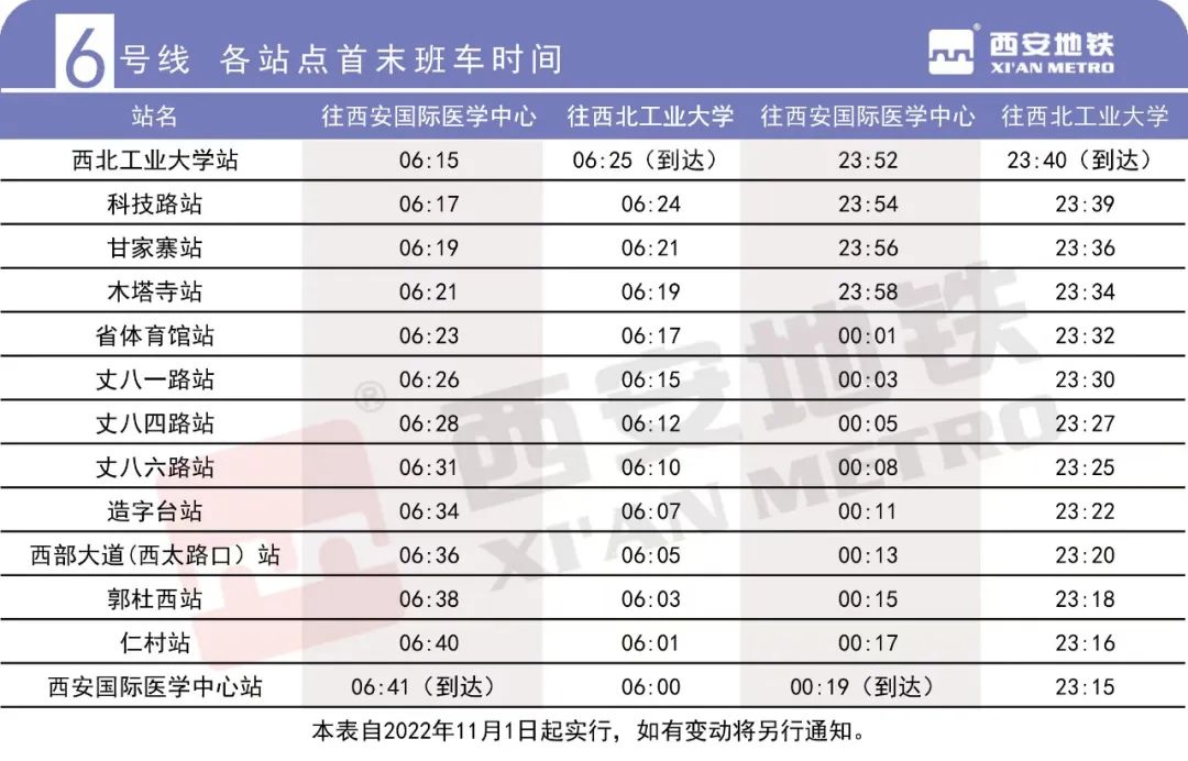 为优化地铁6号线行车组织,西安地铁于11月1日起对该线路列车运行图进行调整,方便市民乘客快捷出行。