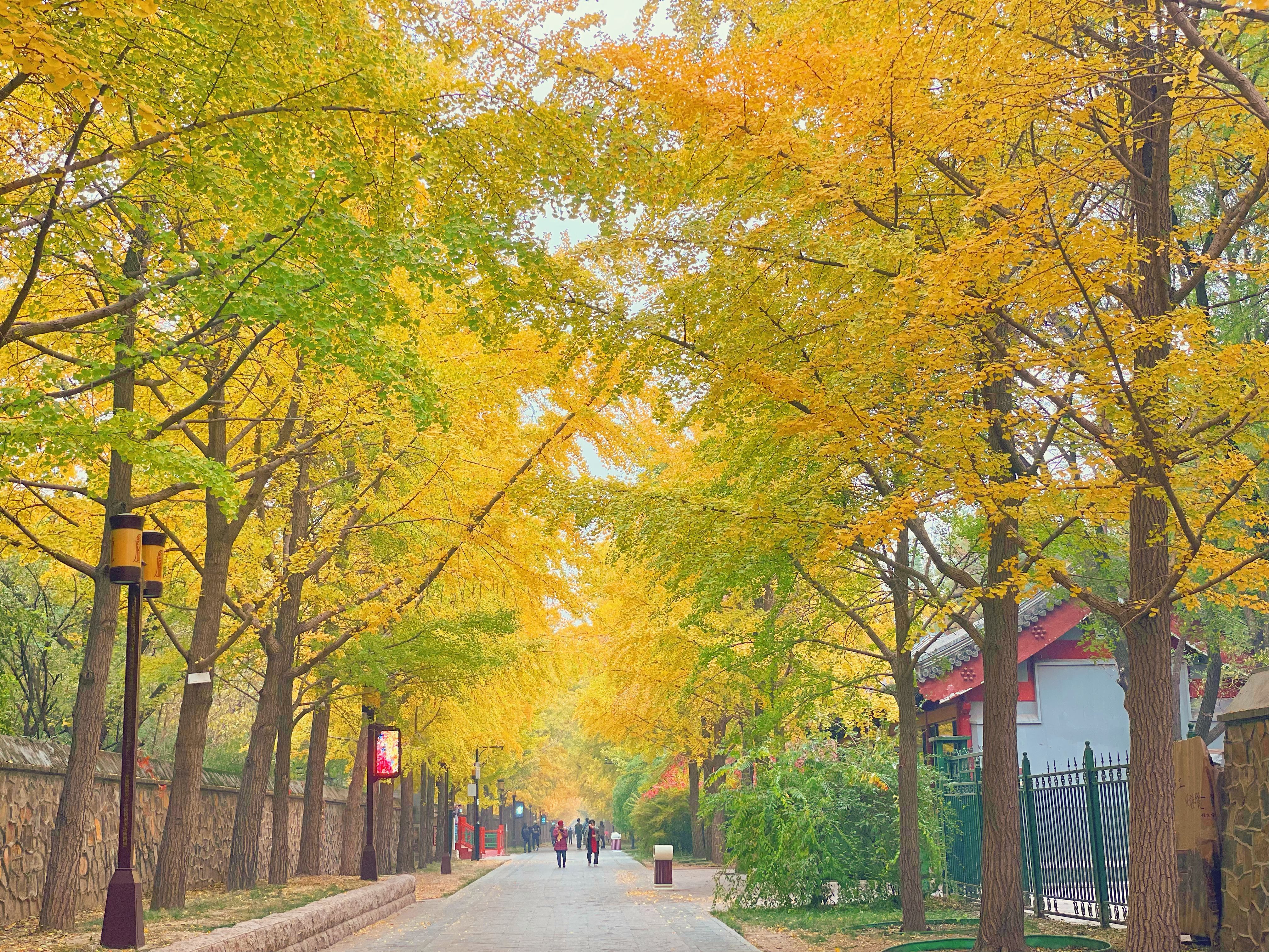 “银杏大道从圆明园三园交界一直到西洋楼遗址的西口附近,形成了一条近千米的银杏大道。每年到了10月下旬都会吸引很多游客来拍照打卡。另外除了在三园交界的银杏大道,从东门一直到西洋楼遗址的东口,也可以观赏到银杏的景观。”圆明园管理处宣传科科长邱静介绍。