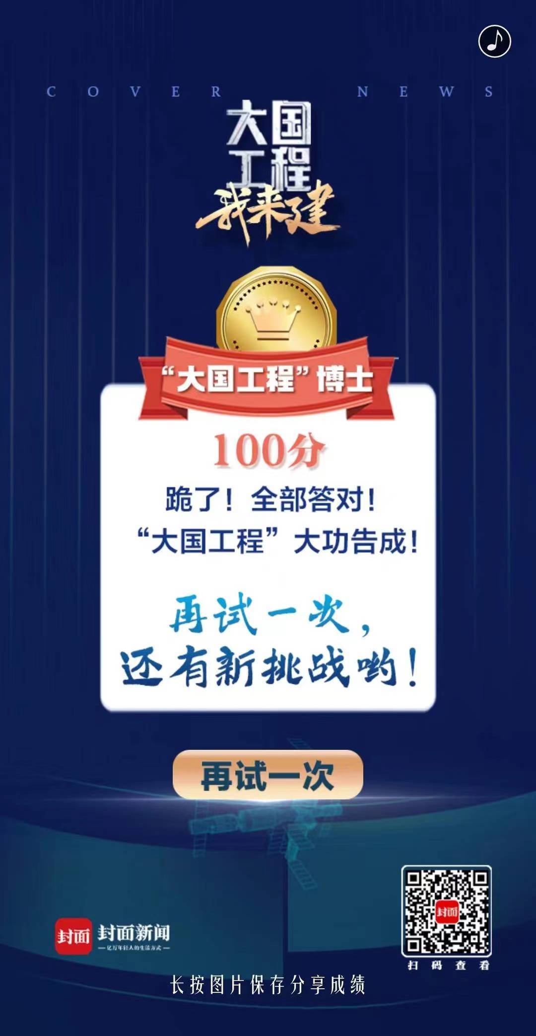 关于大国工程的选择题,你答对了几道?在这篇文章里,封面新闻将为大家“划重点”。本次知识问答的满分答案,来自以下这些关键词。