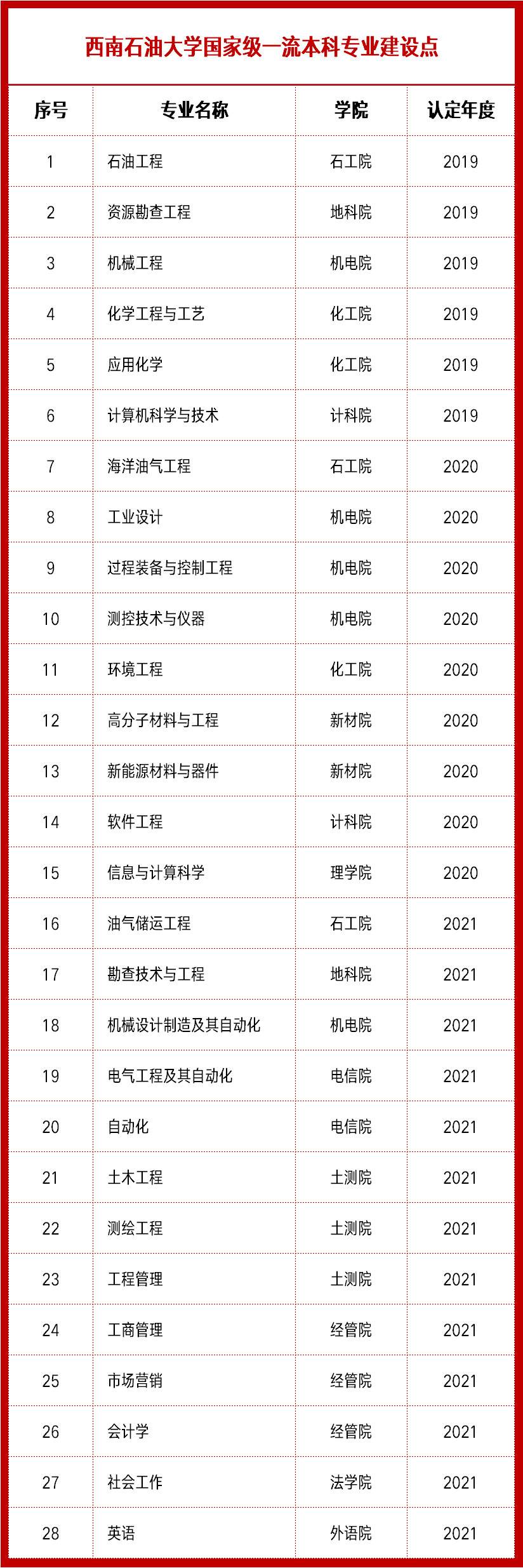 西南石大持续加强专业建设,做强一流本科,助力“双一流”高校创新型人才培养。自2019年教育部启动一流本科专业建设“双万计划”以来,学校共获批43个一流本科专业建设点,其中国家级28个。