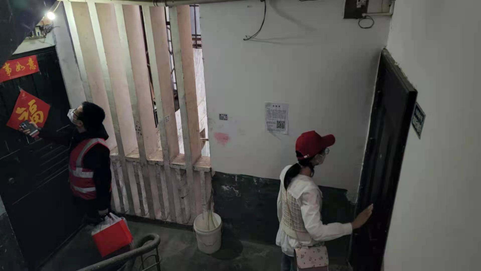 “老乡,打扰了,今天做核酸检测了吗?”11月1日,苍溪县陵江镇解放路社区状元小区,来四川省广元市自苍溪县应急管理局的志愿者孙浩、陈显金正在开展“敲门行动”,提醒还未做核酸检测的居民及时到附近定点采集点位采集核酸。“全员核酸检测必须保证不漏一人,责任重大,再苦再累都是值得的。”孙浩坚定地说,这时的他由于连爬几座高楼,汗水已经打湿了他的头发、口罩。