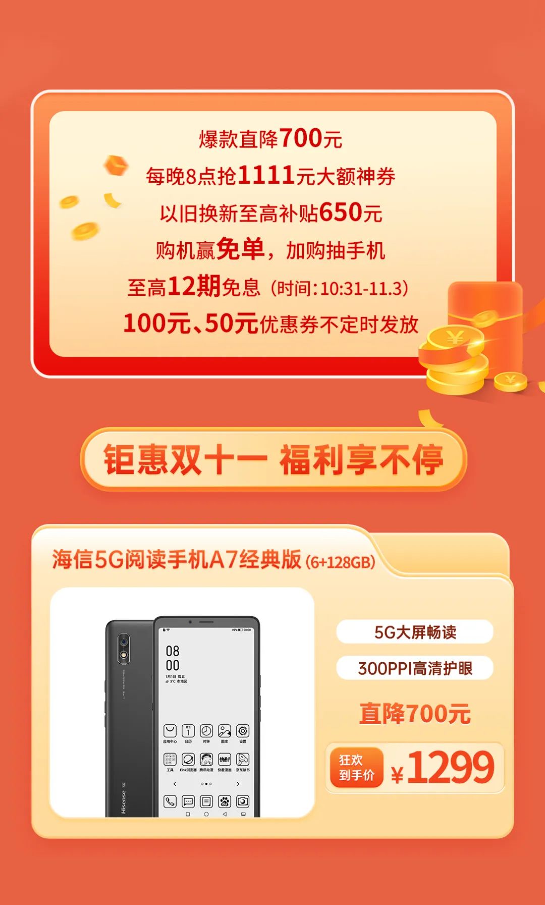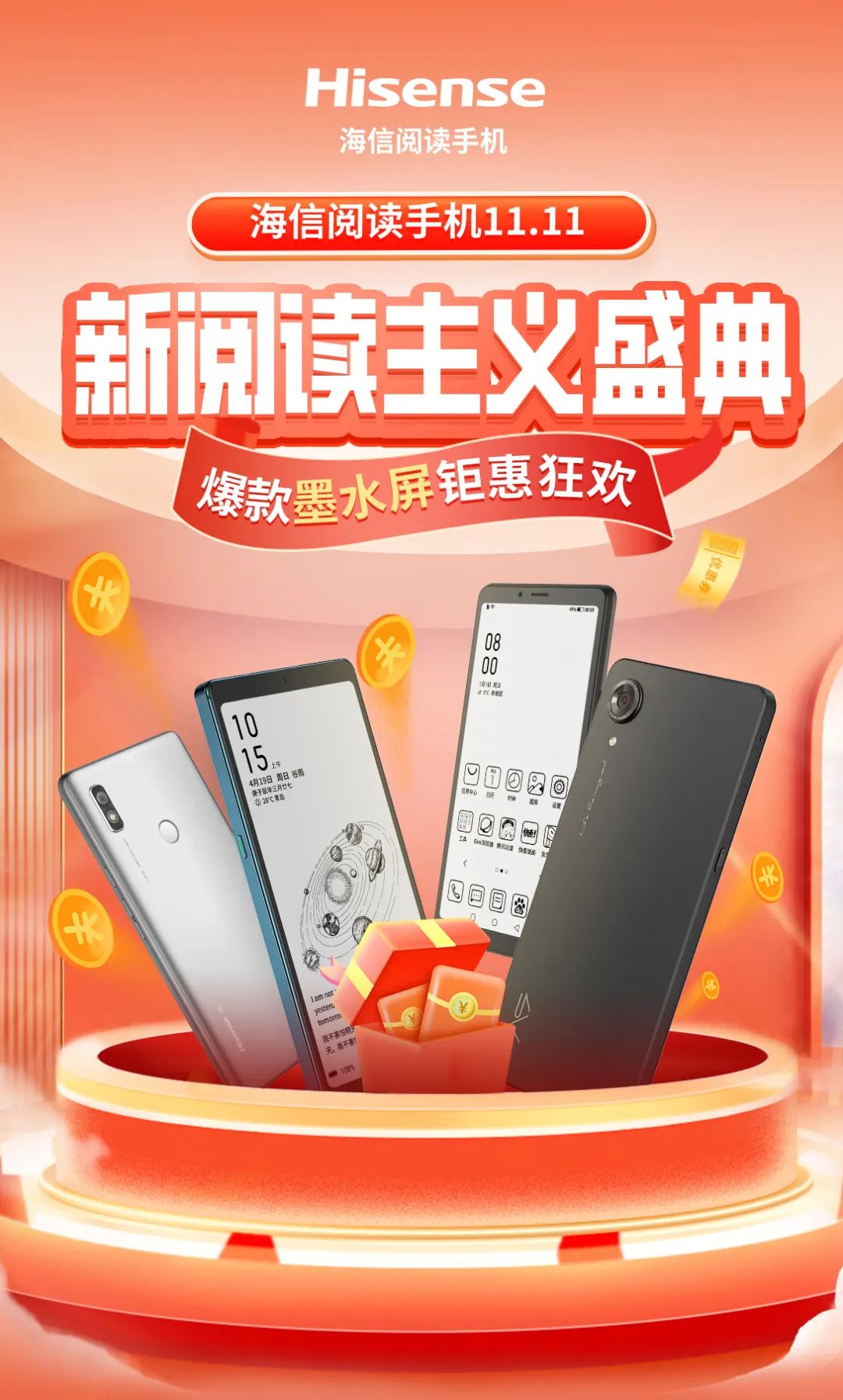 恰逢11.11期间,海信手机京东自营旗舰店 新阅读主义盛典大促,也正在火爆进行中。