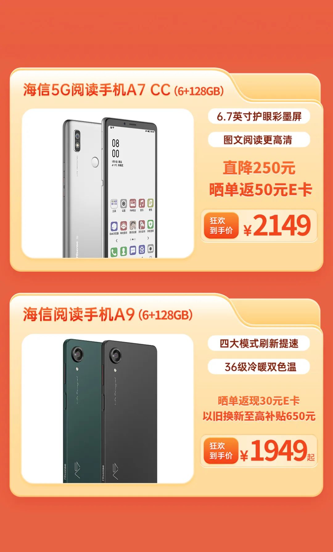 海信护眼爆款墨水屏阅读手机A7直降700元,现在入手仅需1299元。